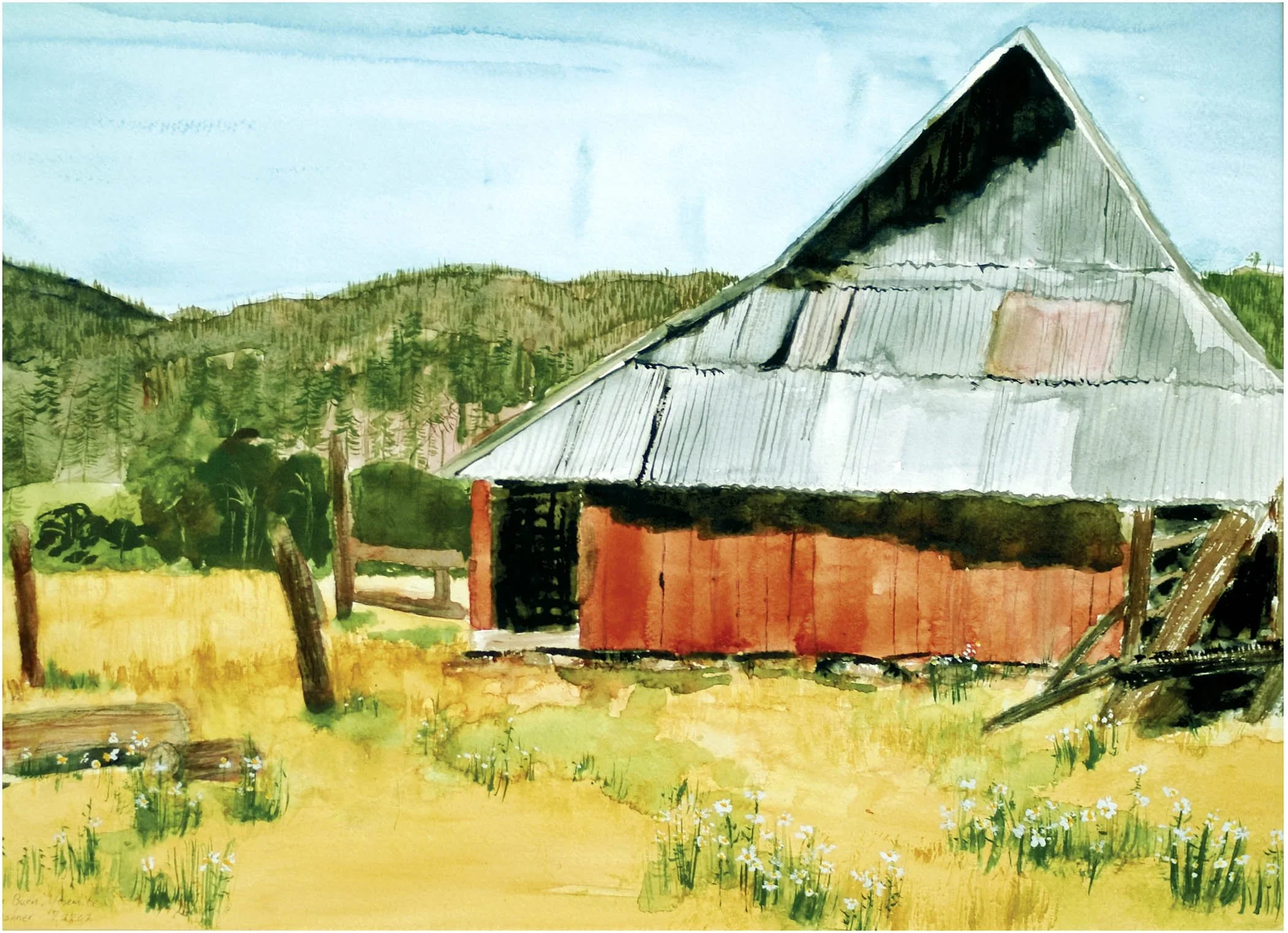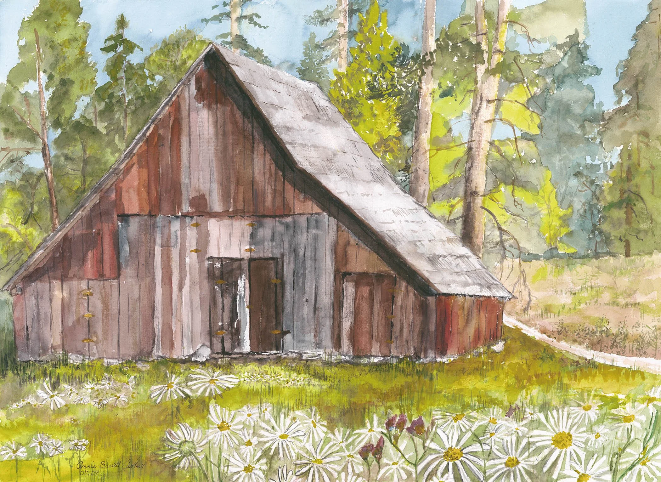 Foresta Barn With Daiseies; Watercolor; 24x36