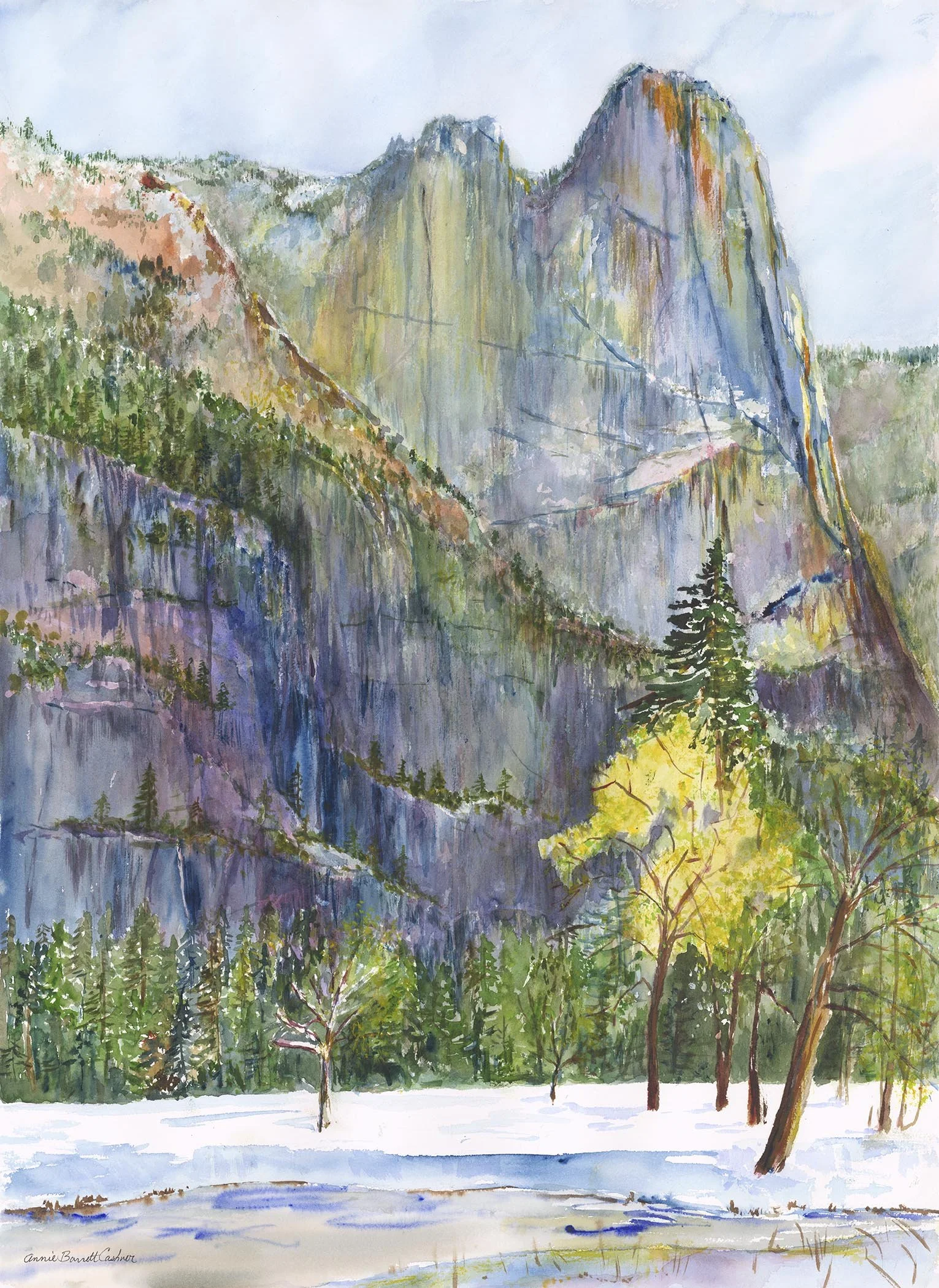 Sentinel Rock, Early Spring; Watercolor; 24x36