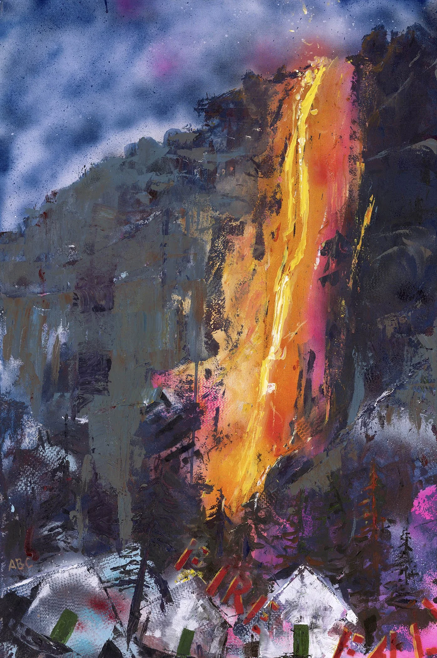 Fire Fall and Camp Curry; Oil; 24x36