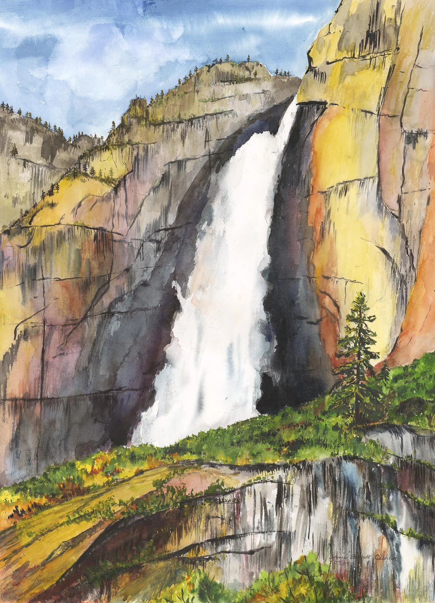 Upper Yosemite Falls; Watercolor; 24x36